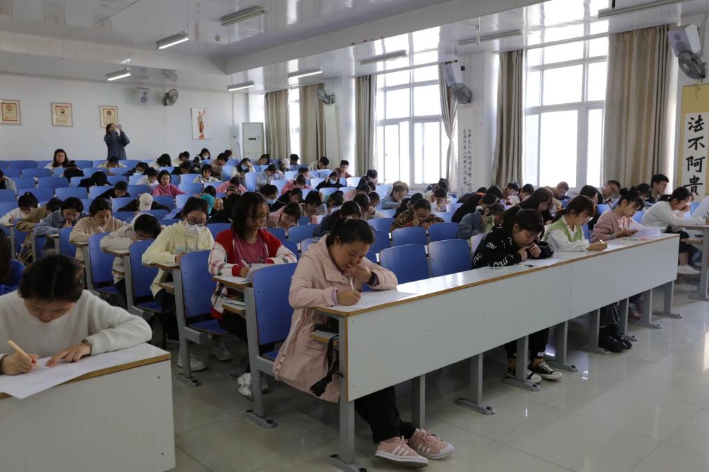 本次竞赛以笔试答卷的形式,从选择、判断、填空、简答四个方面,综合考察同学们的国防知识功底通过初赛选拔出优选手参加国防知识竞赛复赛。为保证考试真实有效,本次考试采取单人单桌的方式。八点半左右,考生和两名监考员陆续到达考场,考生到齐后监考员点名,九点发卷,正式开始考试。考试期间,考场秩序井然,监考员认真监考,同学们安静沉着答题。十点,铃声响起,所有人停止答题、陆续交卷,至此,国防知识竞赛初赛圆满结束。