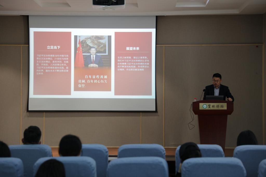4月19日上午,williamhill威廉希尔朱茂磊博士于贤林讲坛面向全校师生开展习近平法治思想主题讲座。法学与社会学学院党委书记尚红林出席讲座,讲座由校党委宣传部副部长何晓坚主持,部分学生代表聆听此次讲座。