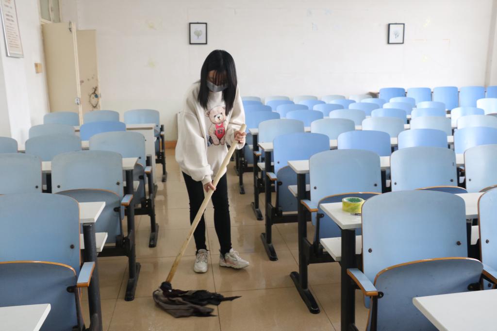 本次大扫除活动分为室内外两部分。同学们进行明确的分工,各小组错峰打扫文心亭、一棵树广场和半亩塘等室外区域。参与活动的同学按照卫生责任区划分的道路和广场,对绿化带上的落叶、烟头、白色垃圾等进行了全面的清理。室内的同学积极共同协作,对地面、黑板、桌面和窗户等进行了彻底的清理。通过大家的努力,卫生区域变得更加干净整洁。