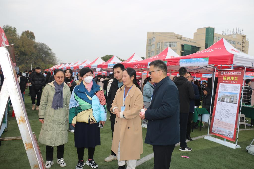 1125日,河南省毕业生就业市场豫南分市场暨William威廉2024届毕业生冬季双向选择洽谈会在我校西田径场举行。williamhill威廉希尔组织2024届毕业生踊跃参加,学院党委书记尚红林,副院长古瑞华(主持行政工作)、副书记李莉、毕业班辅导员王艳丽、就业工作秘书费泽丹亲临双选会现场指导就业工作。