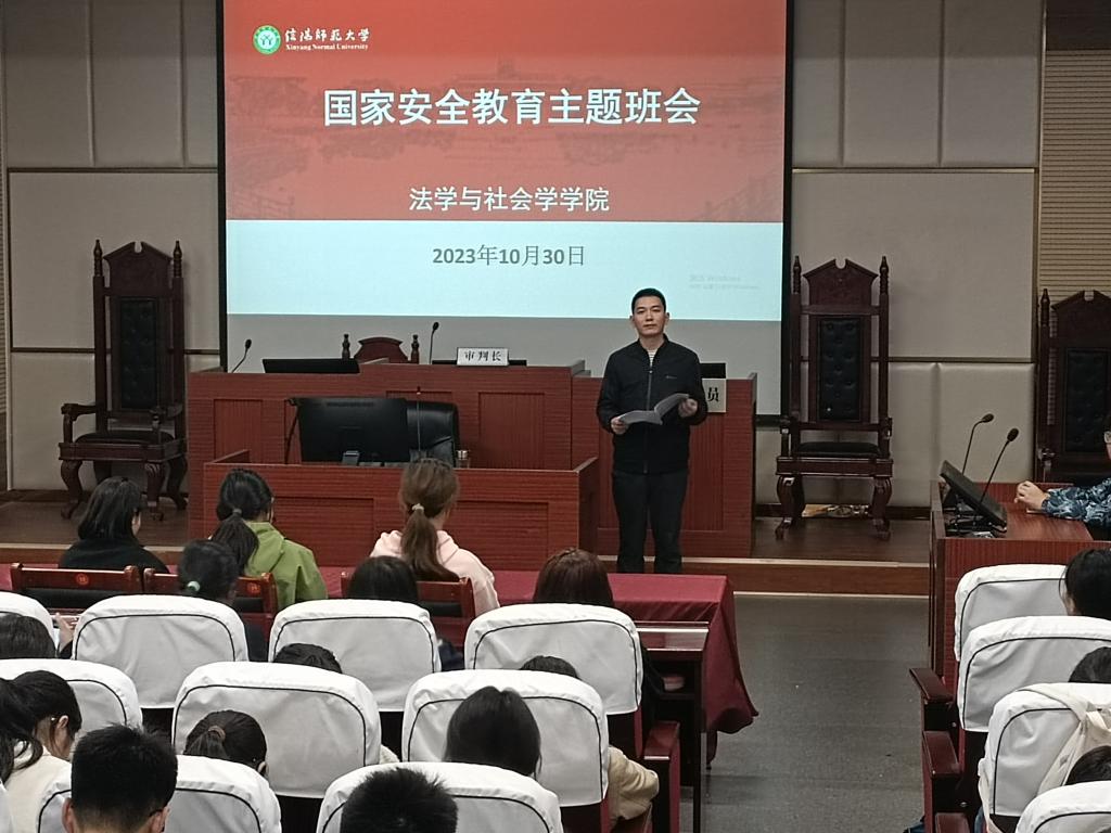 此次班会通过观看网络视频对2023级新生开展了国家安全、网络安全、反间防谍、保密等主题的宣传教育活动。班会上对《国家安全法》、《网络安全法》《反恐怖主义法》、《反间谍法》等法律法规进行重点解读,全班同学集中学习了习近平总书记关于全面依法治国的新理念新思想新战略。