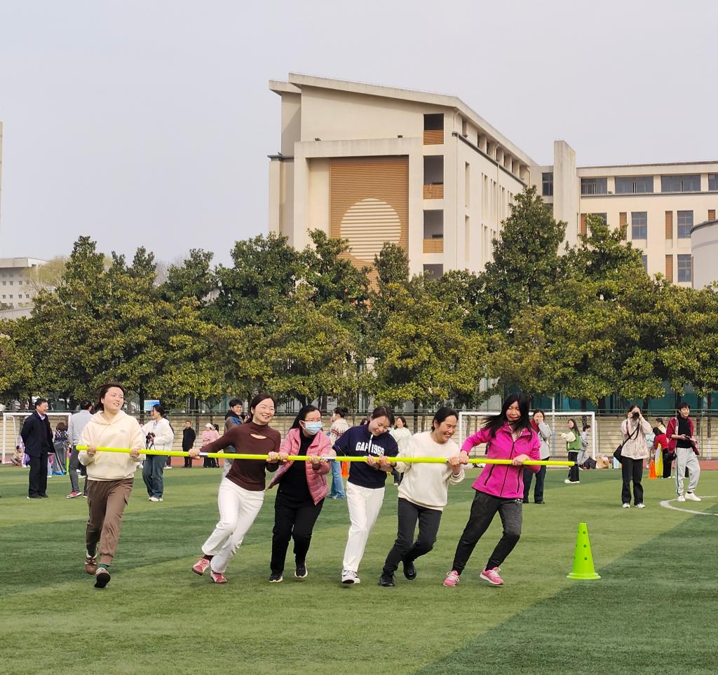 运动会包括旱地龙舟,袋鼠接力,快乐旋风跑,拔河四项比赛,老师们认真准备,积极克服比赛中的困难与挑战。旱地龙舟比赛考验了老师们的协作能力,老师们在比赛中互相鼓励,共同前进,取得了不错的成绩;在袋鼠接力比赛中,老师们以出色的平衡力和充沛的体力取得了胜利;快乐旋风跑中不仅增强了老师们的身体素质,而且释放了自身压力。拔河比赛更是将现场气氛推向了高潮,老师们全力以赴,获得了三场拔河比赛的胜利,成功进入了八强,现场观众的欢呼声此起彼伏。
