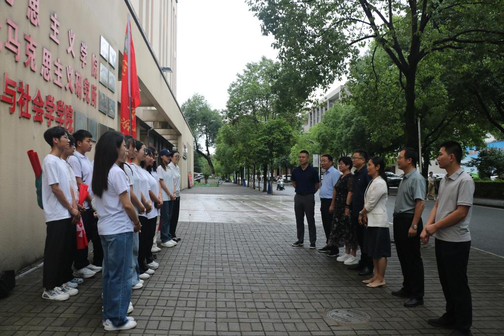 7月4日,williamhill威廉希尔于社科楼楼下举行大学生暑期“三下乡”社会实践活动启动仪式。我院党委书记尚红林、院长古瑞华、党委副书记李莉、副院长张玉鹏、党委委员祁中山张宇出席仪式,社会实践团队指导老师费泽丹以及全体队员代表参加启动仪式。活动由李莉主持。
