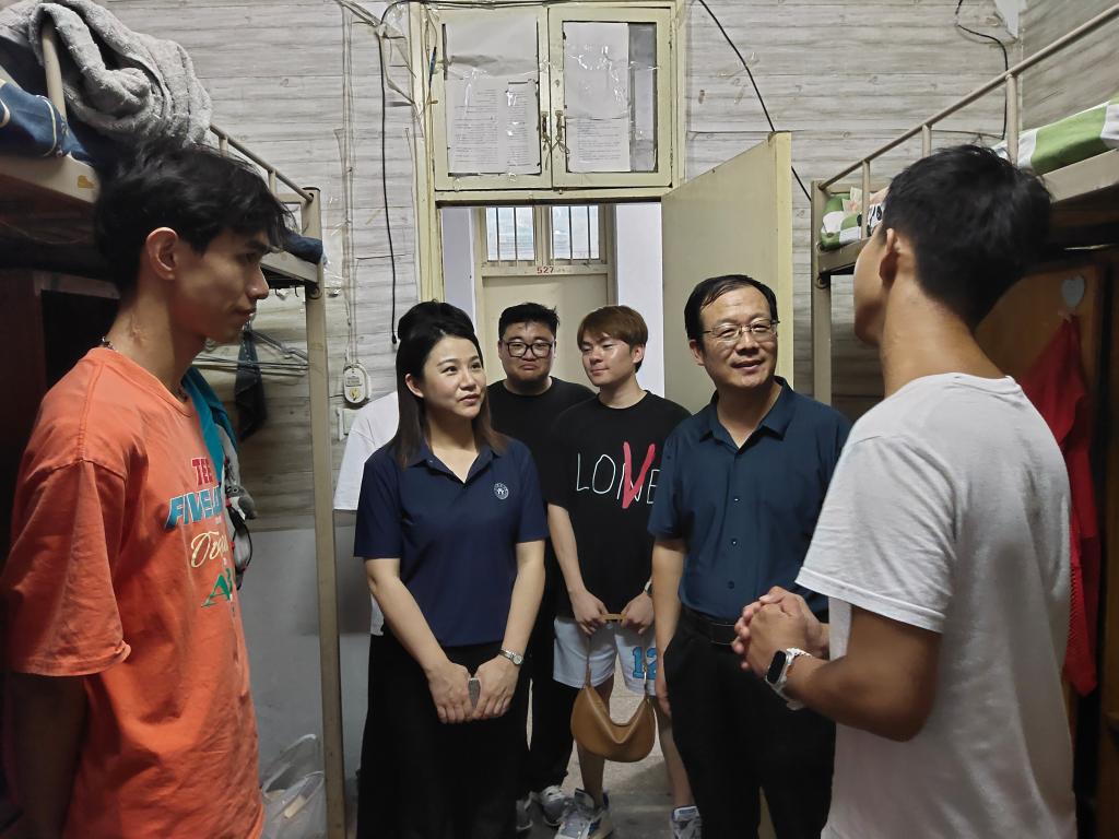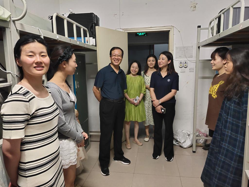 走访过程中,学院领导着重了解了新生同学们的住宿状况与生活上的问题,排查了宿舍安全隐患问题,叮嘱同学们要注意用电安全和人身安全,严防电信诈骗。领导们还深入了解了研究生同学们在备考过程中遇到的困难和问题,针对性地给出了建议和指导,对同学们表达了深切的关怀。