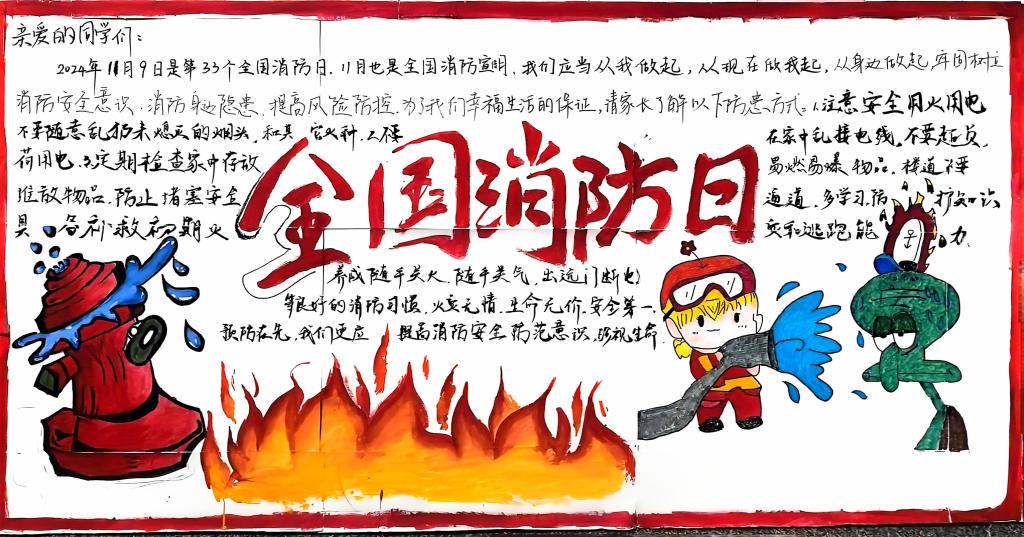 本次活动主要包括展板设计和海报设计两大板块。在展板设计活动中,该院特别绘制了“全国消防日”主题展板,通过直观的视觉呈现,以醒目的颜色搭配和简洁明了的文字,向师生们传递了消防安全的重要性和自防自救的技巧,有效提升了大家的消防安全意识。