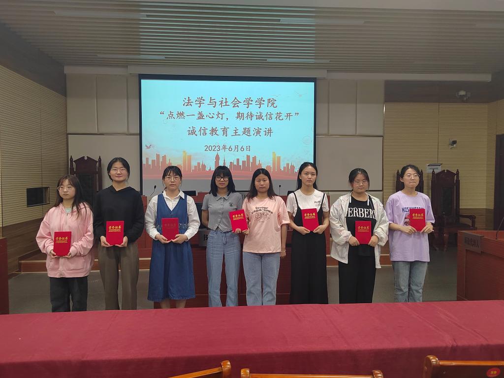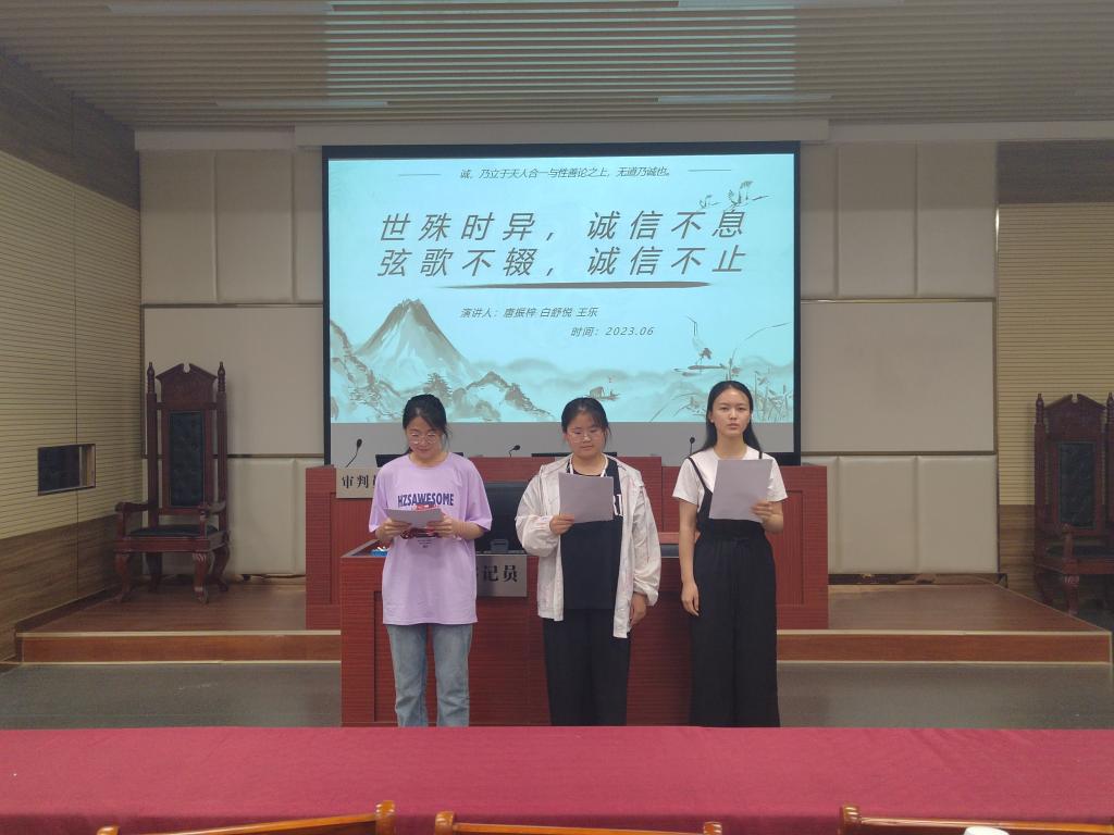 6月6日,学院举办“点亮一盏心灯,期待诚信花开”诚信教育主题演讲,学院教师王艳丽、费泽丹及学生代表分别讲述了自己的诚信经历、他人的诚信事迹。