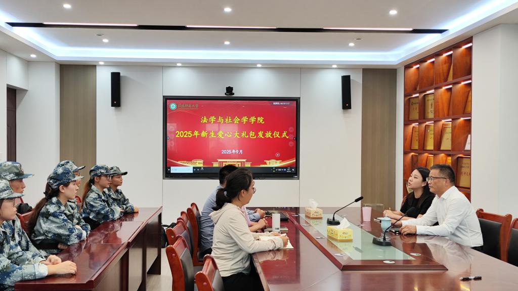 活动中,尚红林与2025级新生亲切交流,鼓励大家积极面对困难、努力成长,在扎实学好专业知识的同时,主动参与社会实践,全面提升自身综合素质。随后,学院领导老师将“爱心大礼包”逐一发放至学生手中。礼包内含生活用品等实用物资,为新生的日常学习与生活提供了支持,也传递了学校的关怀与温暖。