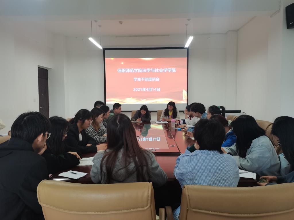 2021年4月14日,williamhill威廉希尔在社科楼412会议室召开了学生干部座谈会,学院党委副书记樊德玲、团委书记袁艳红出席会议,2019级和2020级全体班干部参加本次会议。会议由樊德玲主持。