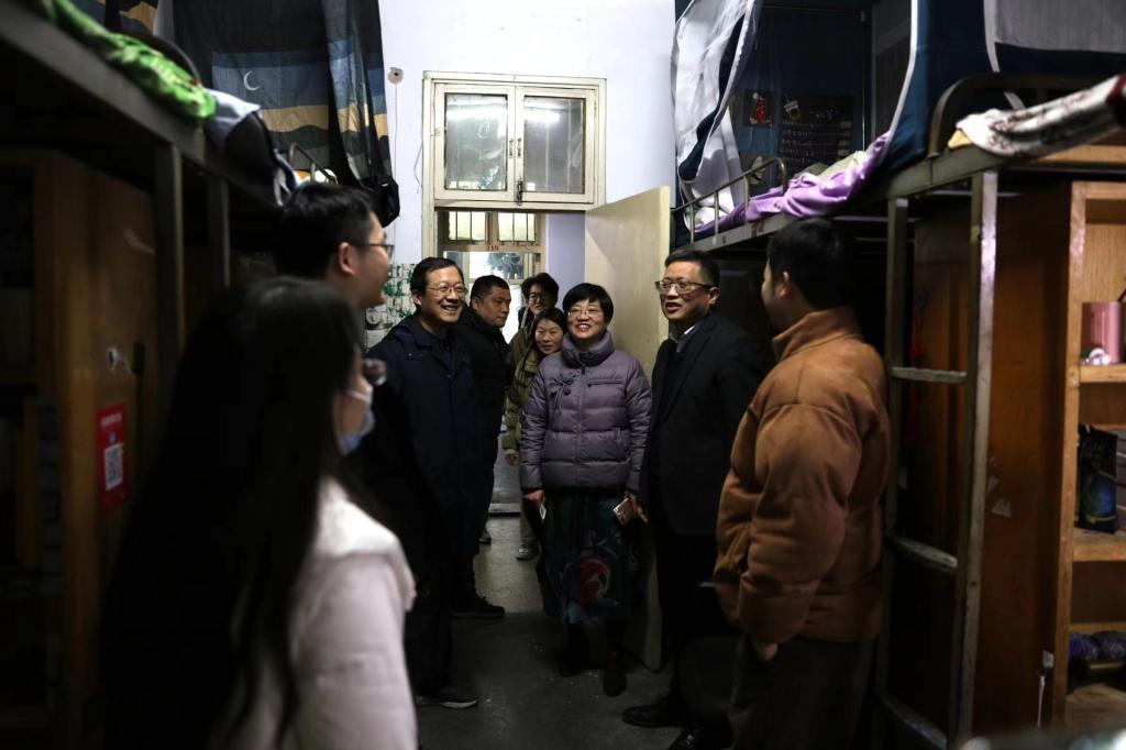 2月20日晚18点,williamhill威廉希尔党委书记尚红林、党委副书记李莉、副院长张玉鹏、团委书记王艳丽、辅导员袁艳红老师、郭瑞老师、刘文君老师带领团委学生会主席团成员,深入学生宿舍,关心慰问返校学生。