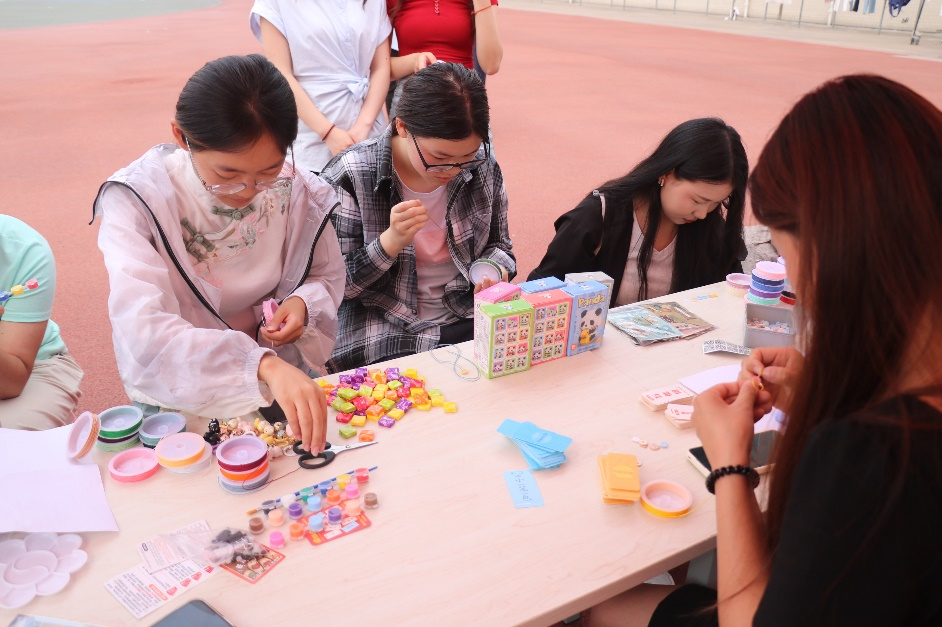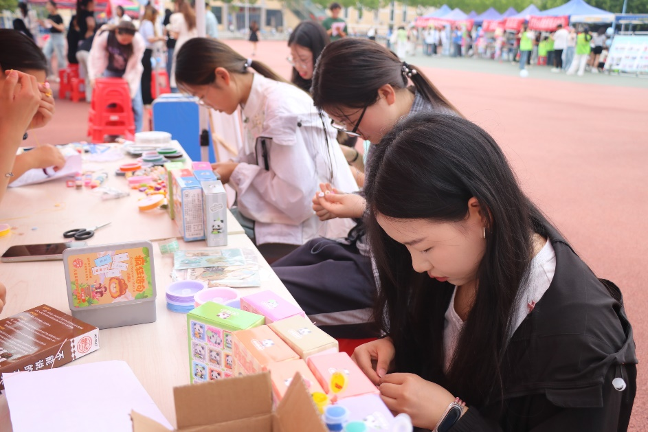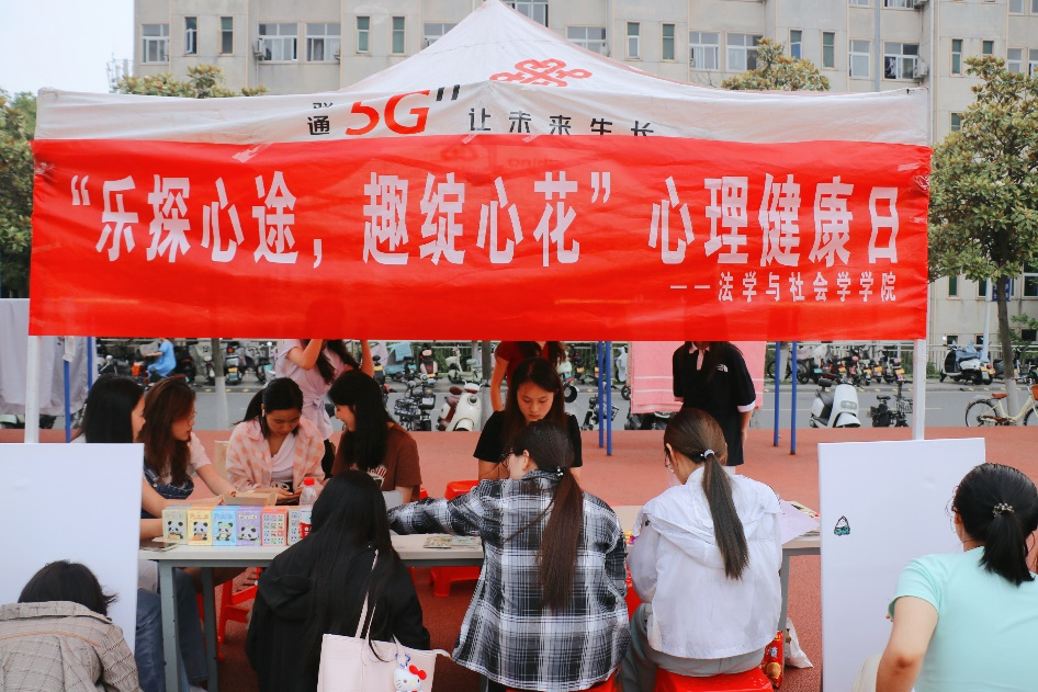 活动现场设置了“记忆纽扣手链”“法律版罪名蹲”“词语造句”“不能说的水果”及“色彩心情画”五大趣味游戏互动区,将心理学原理与专业特色巧妙融合,以轻松活泼的形式帮助学生释放压力、探索内心世界。参与者通过完成游戏任务兑换奖品,并在感悟分享区留下心情画作与留言,现场氛围热烈温馨。