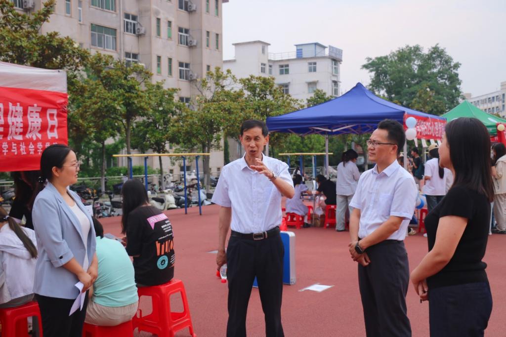 5月27日,williamhill威廉希尔在东操场举办“乐探心途,趣绽心花”心理游园会。本次活动由大学生心理健康教育中心统筹组织,校党委副书记、工会主席岳宗德、大学生心理健康教育中心主任李贵杰莅临现场指导工作,学院党委副书记刘雨亭、心理专干魏然全程参与,师生共同体验心理趣味游戏。